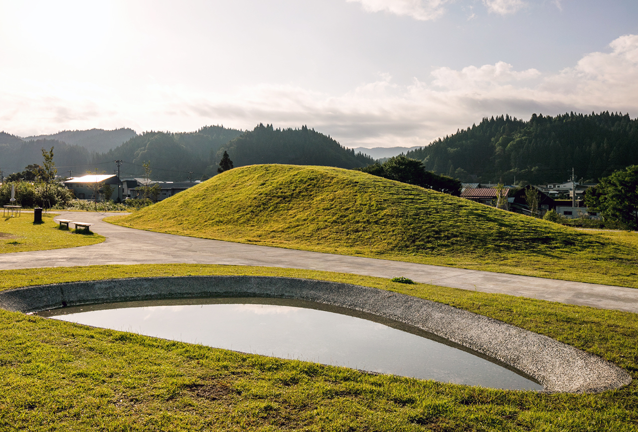 ちょこっとした丘。芝生が生え揃えば、つい~っと草の上を滑ることができるはず、という目論見のもと作られました。頬を撫でる風が気持ちよく、ここでのんびりするのも乙なものですよ。