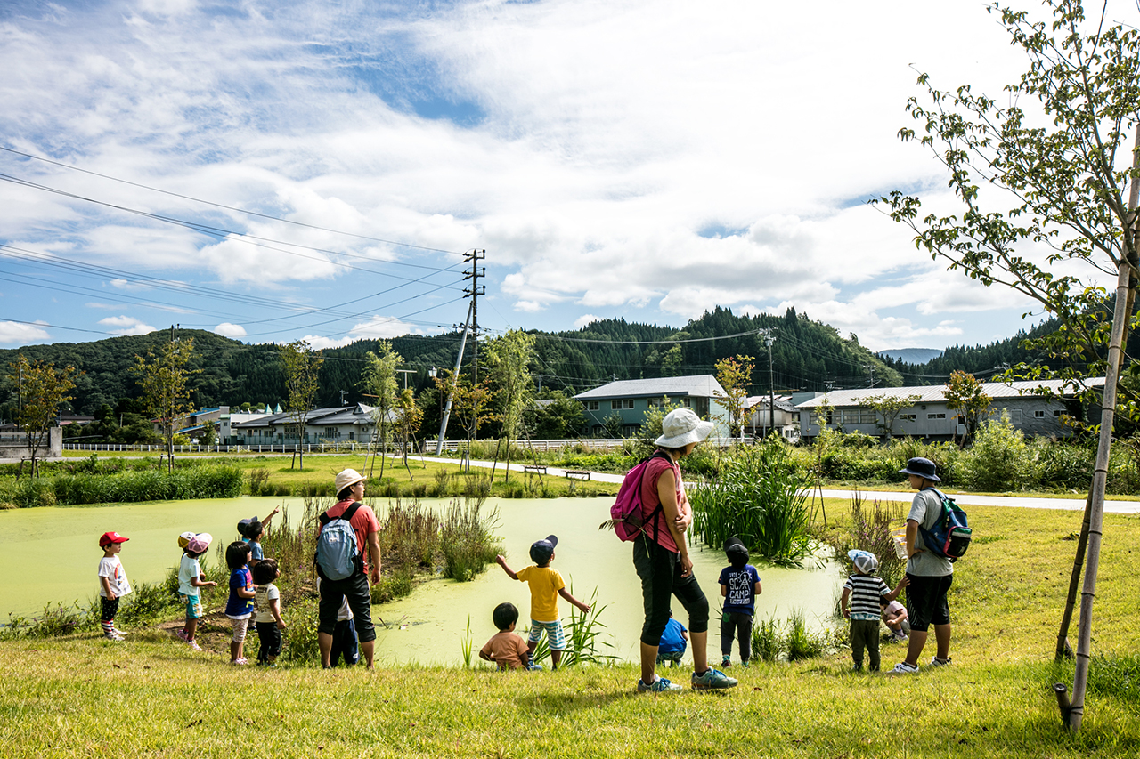 大湯川のほとりに、小さなせせらぎを作りました。夏にはほたるがあつまりますように。そんな願いを込めて、名付けた小川です。