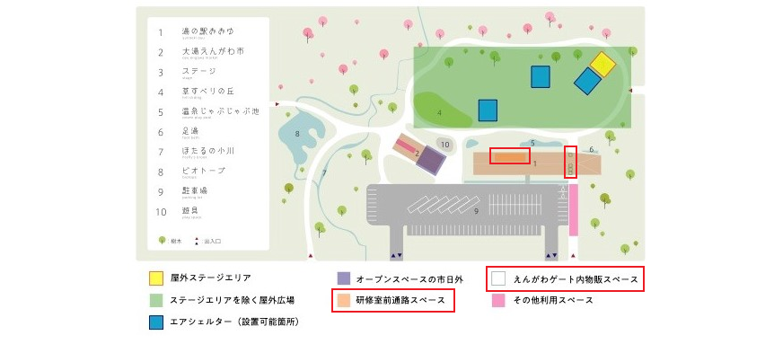 出店エリア:「研修室前通路スペース」または「えんがわケート内物販スペース」を予定しています