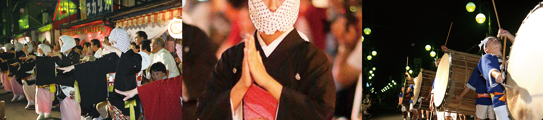 秋田県の三大盆踊りのひとつに数えられる情緒豊かな盆踊りです。かがり火を囲んで踊る輪踊りで、常に内側を向いて優雅に踊るのが特徴。