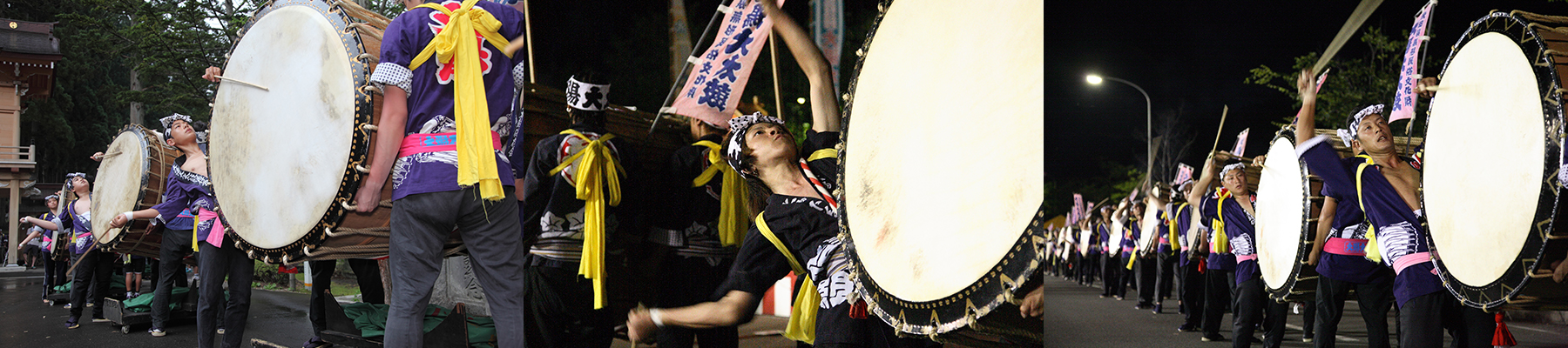 秋田県の無形民俗文化財に指定されているお祭。50組以上の打ち手による大太鼓の音色が披露されます。五穀豊穣の喜びと先祖の供養を兼ね、出穂の時期の空に響き渡るお祭です。